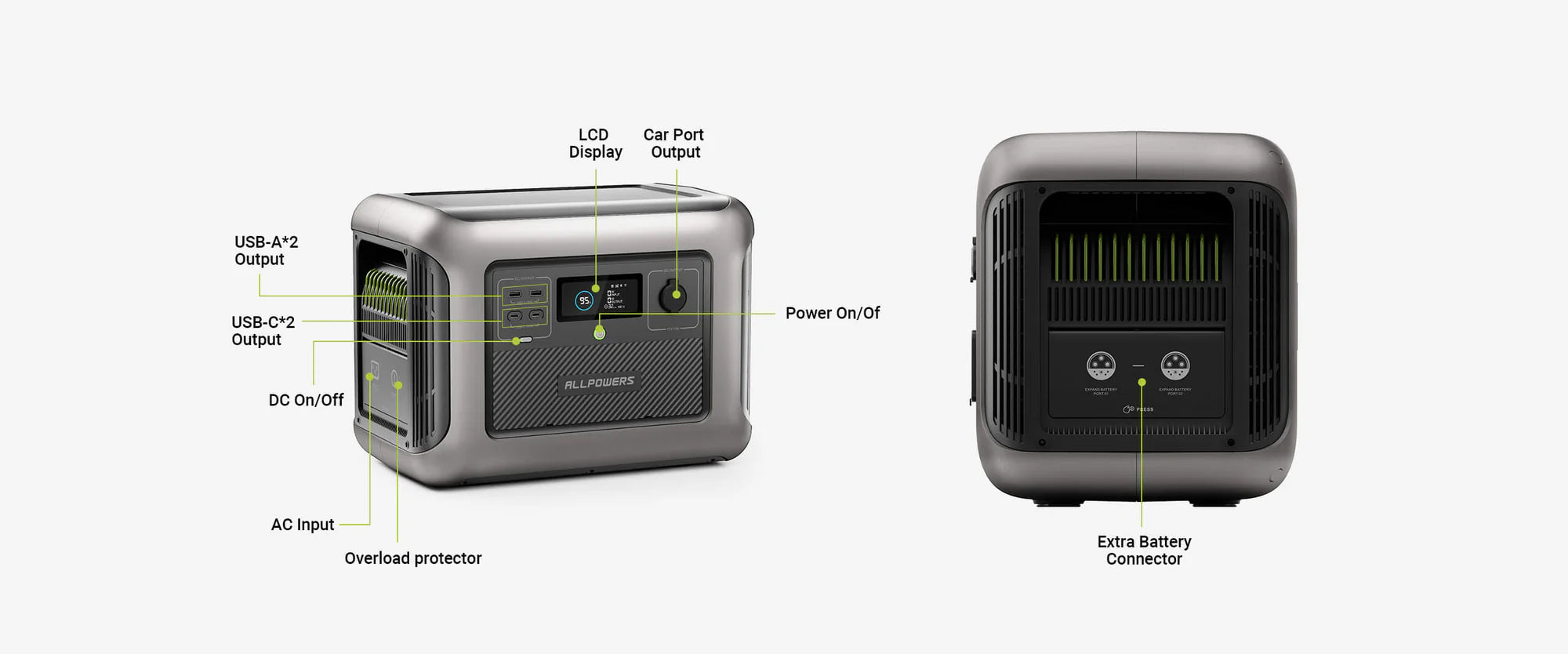 Come batteria di accompagnamento a R1500 o R2500, B1000 ha una capacità di 1152 Wh, compatibile con R1500 per una capacità massima di 4.608 Wh (1*R1500+3*B1000). Abbastanza per superare una grave interruzione di corrente.