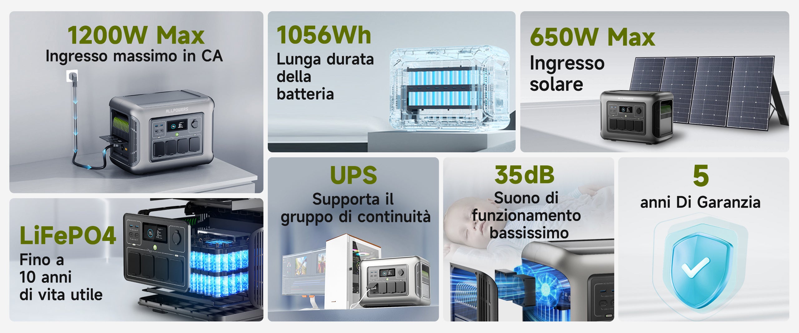 ALLPOWERS R1500 LITE Centrale Elettrica Portatile 1600W 1056Wh LiFeP04 Batteria