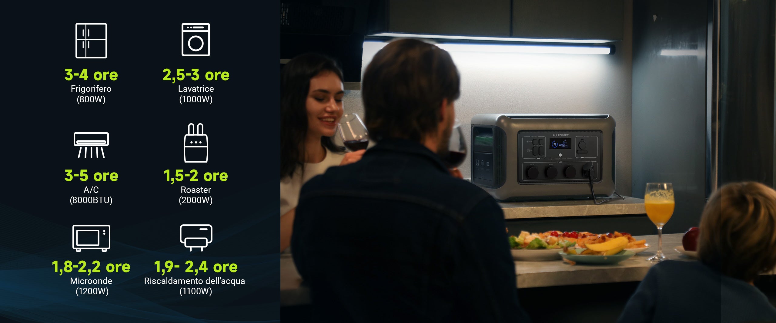 - Carica solare massima di 2000 W in 2,5 ore;
