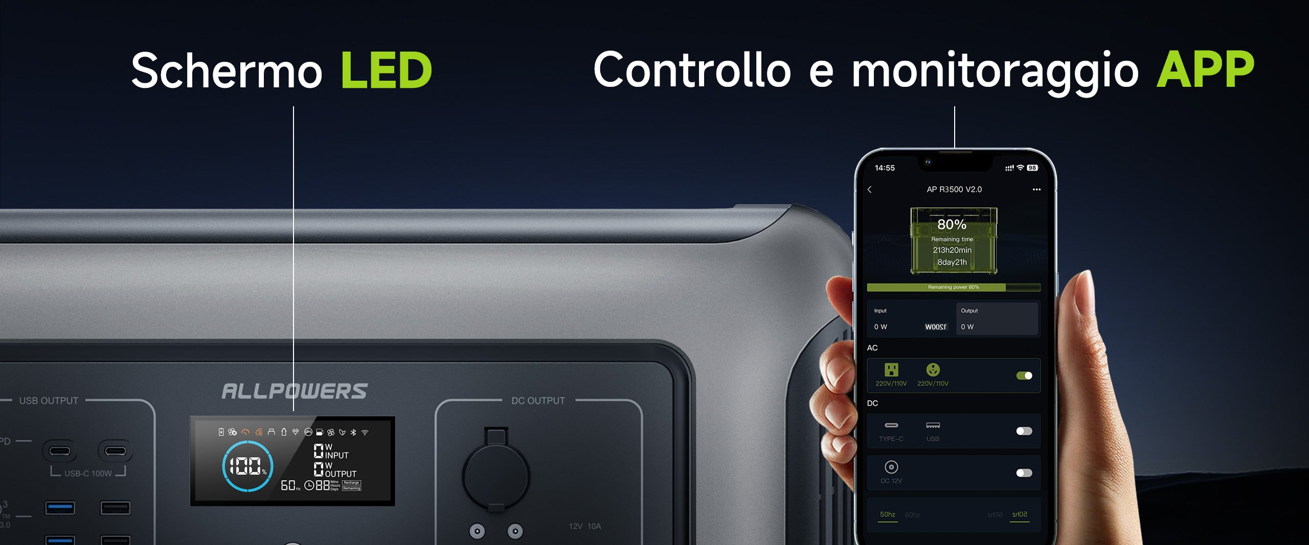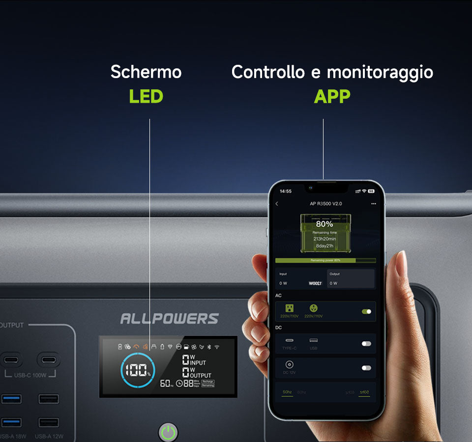 Facile da realizzare collegandosi all'APP ALLPOWERS tramite monitoraggio dell'alimentazione Wi-Fi/impostazione delle funzioni/controllo remoto/aggiornamento del sistema.