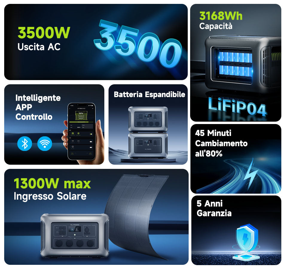 ALLPOWERS 3500W Generatore Solare (R3500 + SF200 200W Pannello Solare Flessibile)