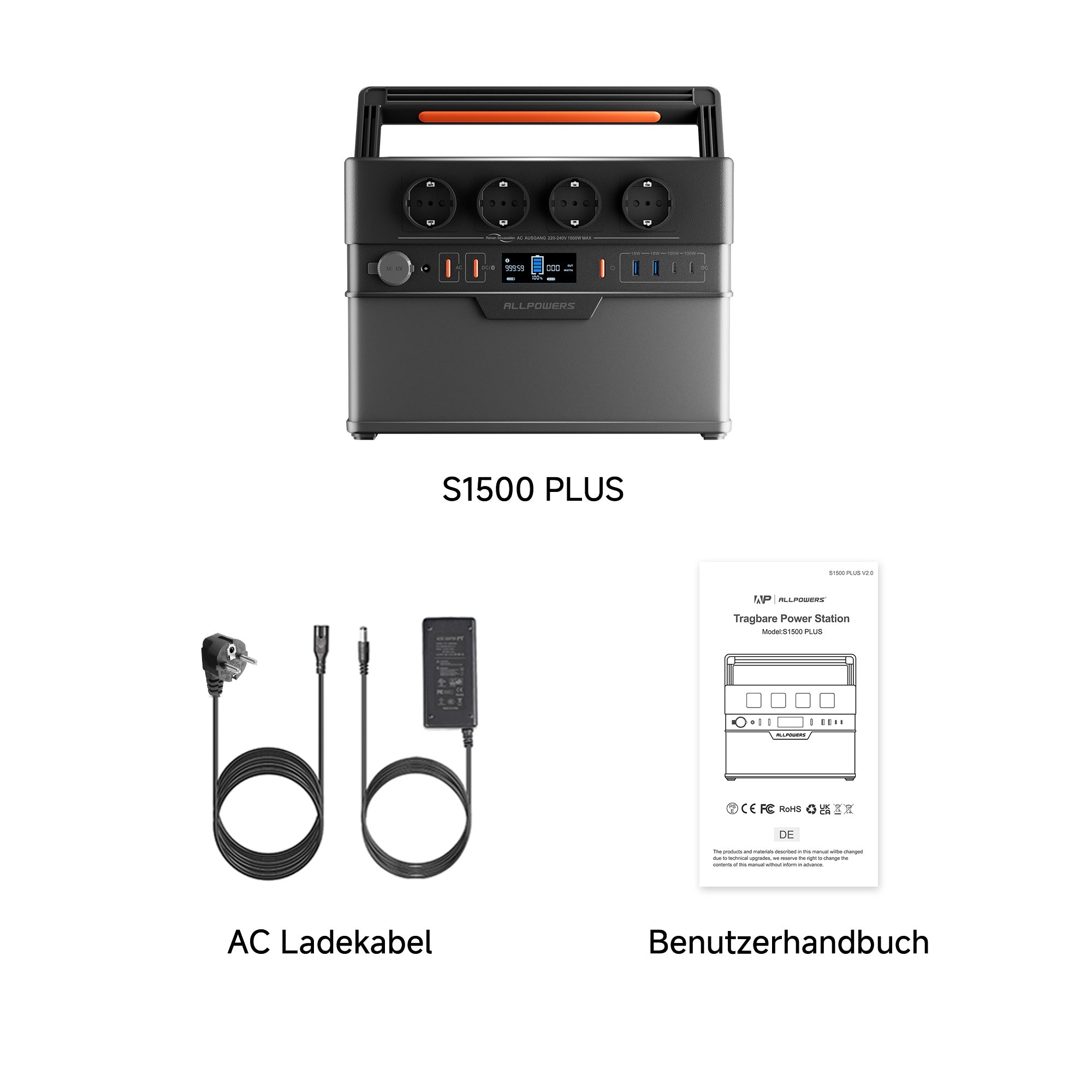 • La consegna comprende: S1500 Plus, cavo di ricarica AC, manuale d'uso.