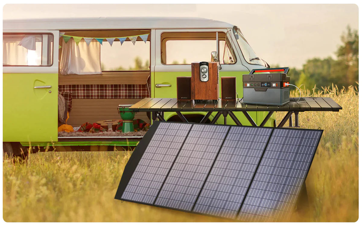 Pannello solare portatile ALLPOWERS da 200 W con efficienza fino al 22% e 1/3 più leggero della stessa potenza del silicio solare. L'uscita da 200 W può fornire più potenza ai tuoi dispositivi e caricarli più velocemente.