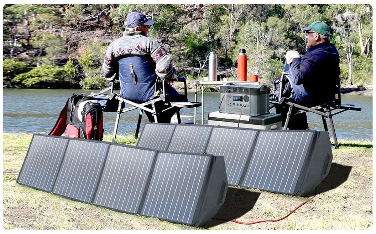 Il pannello solare pieghevole ALLPOWERS da 200 W è compatibile con la maggior parte delle centrali elettriche portatili sul mercato. Il kit del pannello solare portatile include connettori di diverse dimensioni per il generatore solare portatile (da Connettore solare ad Anderson / da Connettore solare a DC).