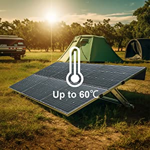 Il pannello solare pieghevole ALLPOWERS da 600 W realizzato con celle solari monocristalline, ha un'elevata efficienza di conversione, fino al 23%. Il pannello solare portatile da 600 W genera più energia e offre prestazioni migliori rispetto ai pannelli solari convenzionali in qualsiasi condizione atmosferica, anche nelle giornate nuvolose o fredde.