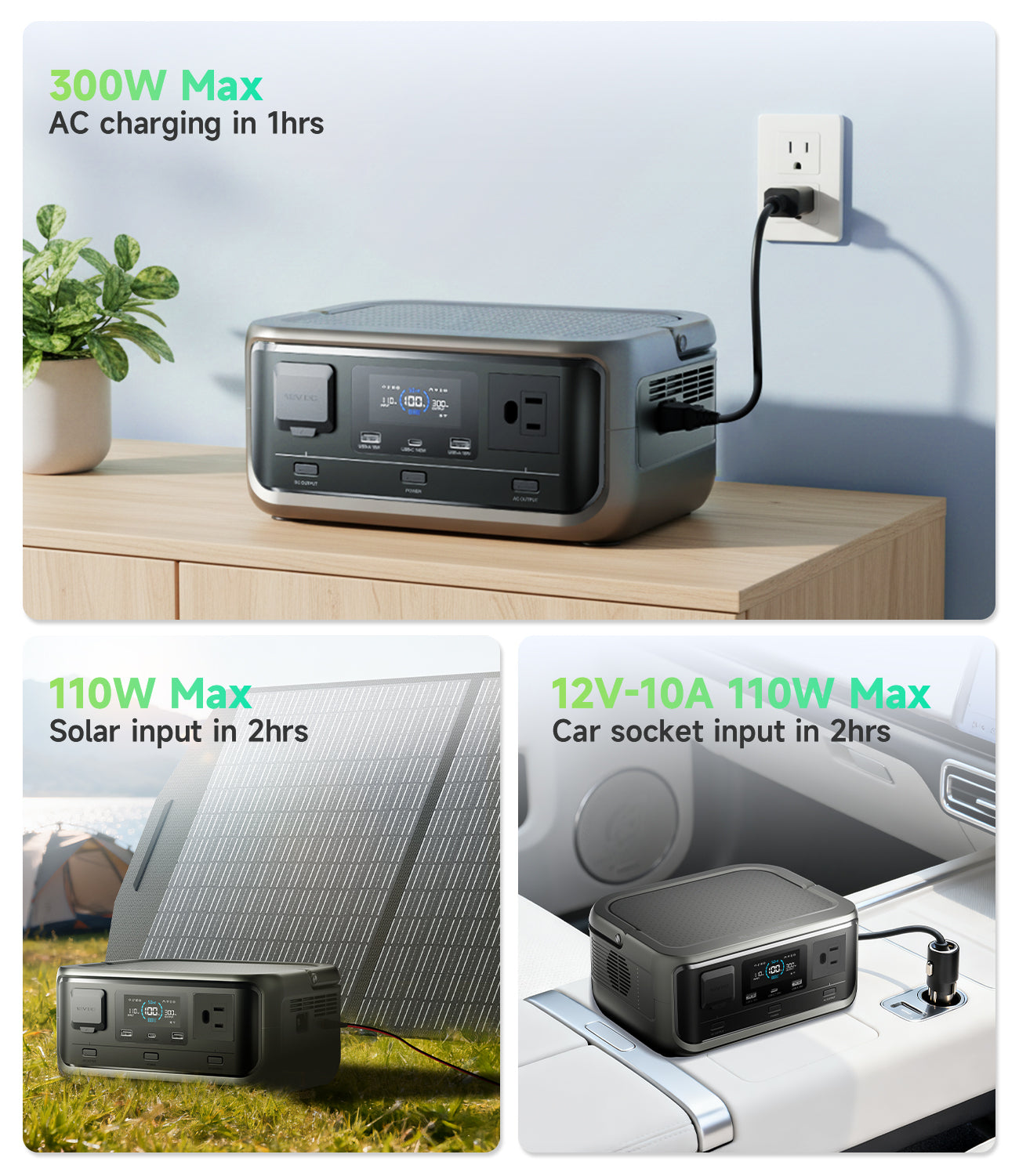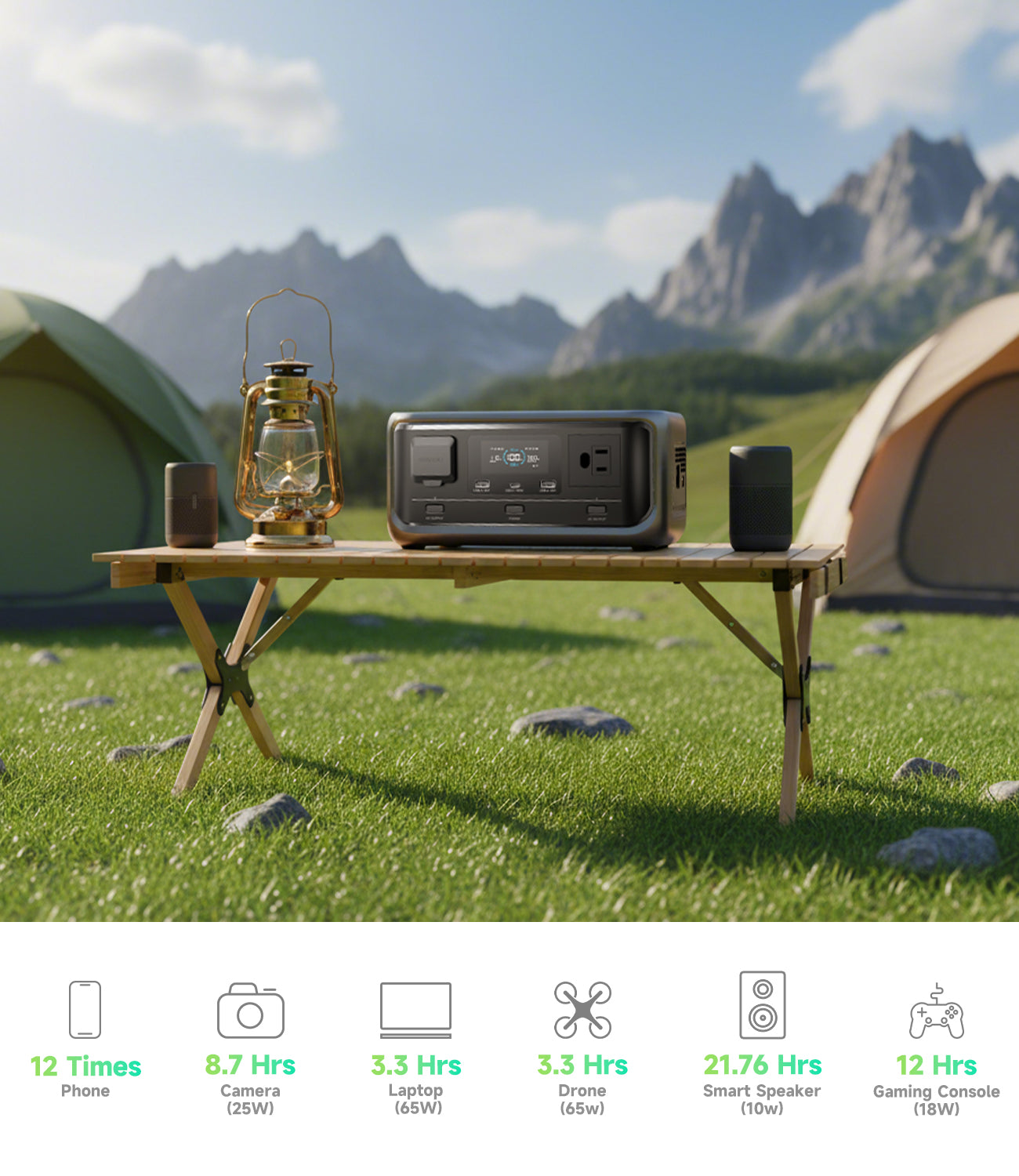 - Ampia capacità e alta potenza: con una capacità di 256Wh e un'uscita CA a onda sinusoidale pura di 300W (600W di picco)