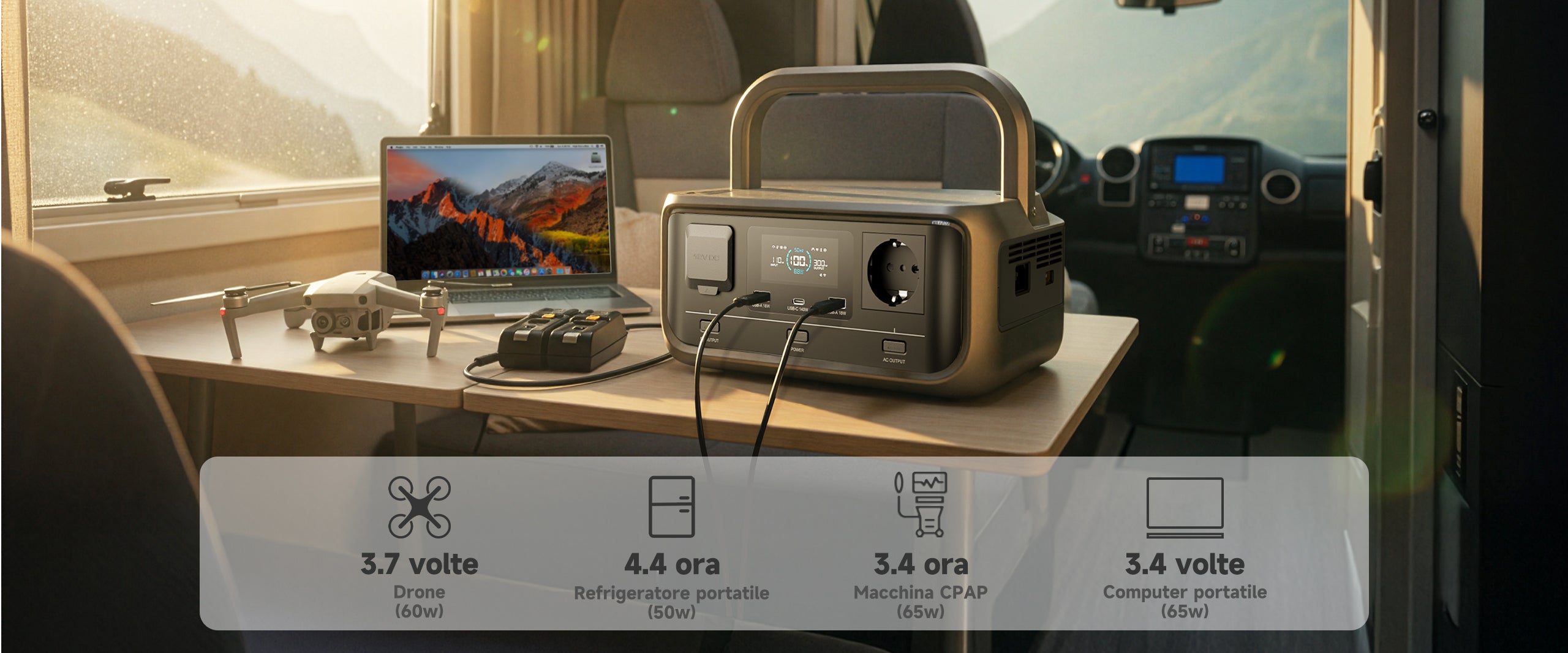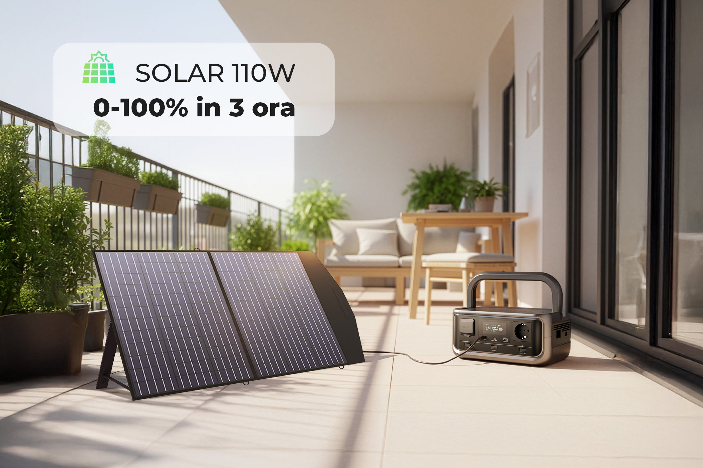 Il tuo compagno energetico per goderti la vita all'aria aperta. Predisposto per l'energia solare e portatile.