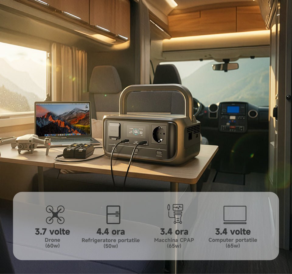 - 4 modalità di ricarica: CA/solare/caricatore accendisigari/CA+solare.
